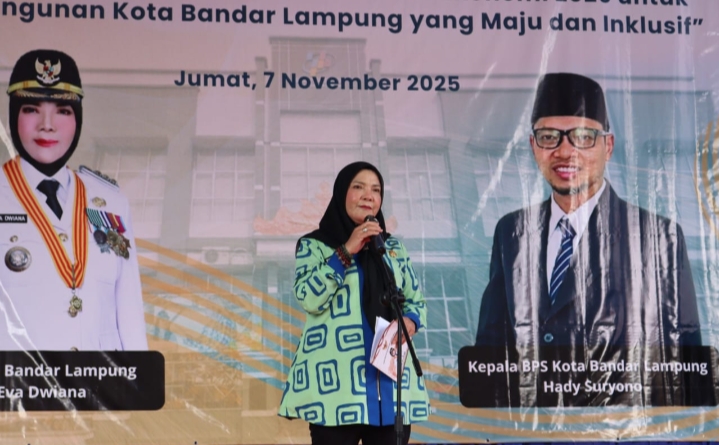 BANDAR LAMPUNG—Wali Kota Bandar lampung Hj. Eva Dwiana hadir pada peresmian gedung Pelayanan Statistik Terpadu (PST) di gedung Badan Pusat Statistik (BPS) Bandar Lampung pada, Jumat (07/11/2025).